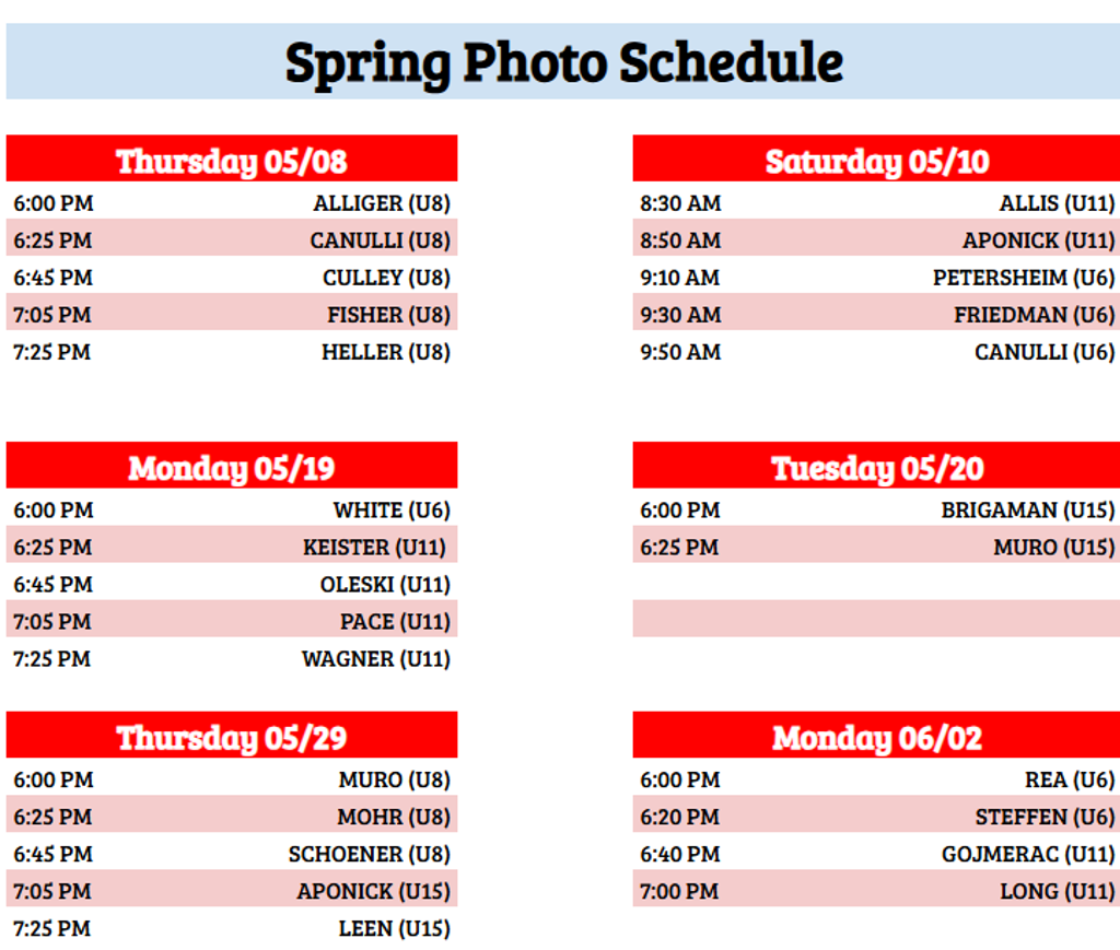 Once photos are posted you should be able to find your player by a last name tag. If you don't see your players last name it means one of two things.